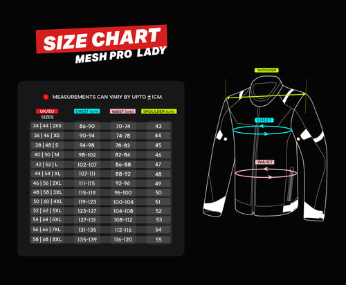 Protective Jacket with Removable Armour: Bela Mesh Pro has removable armour at elbows, shoulders, and back. These armours are EN 1621-1:2012 certified. Having added protection of body armour is proven to reduce severe injury risks.
