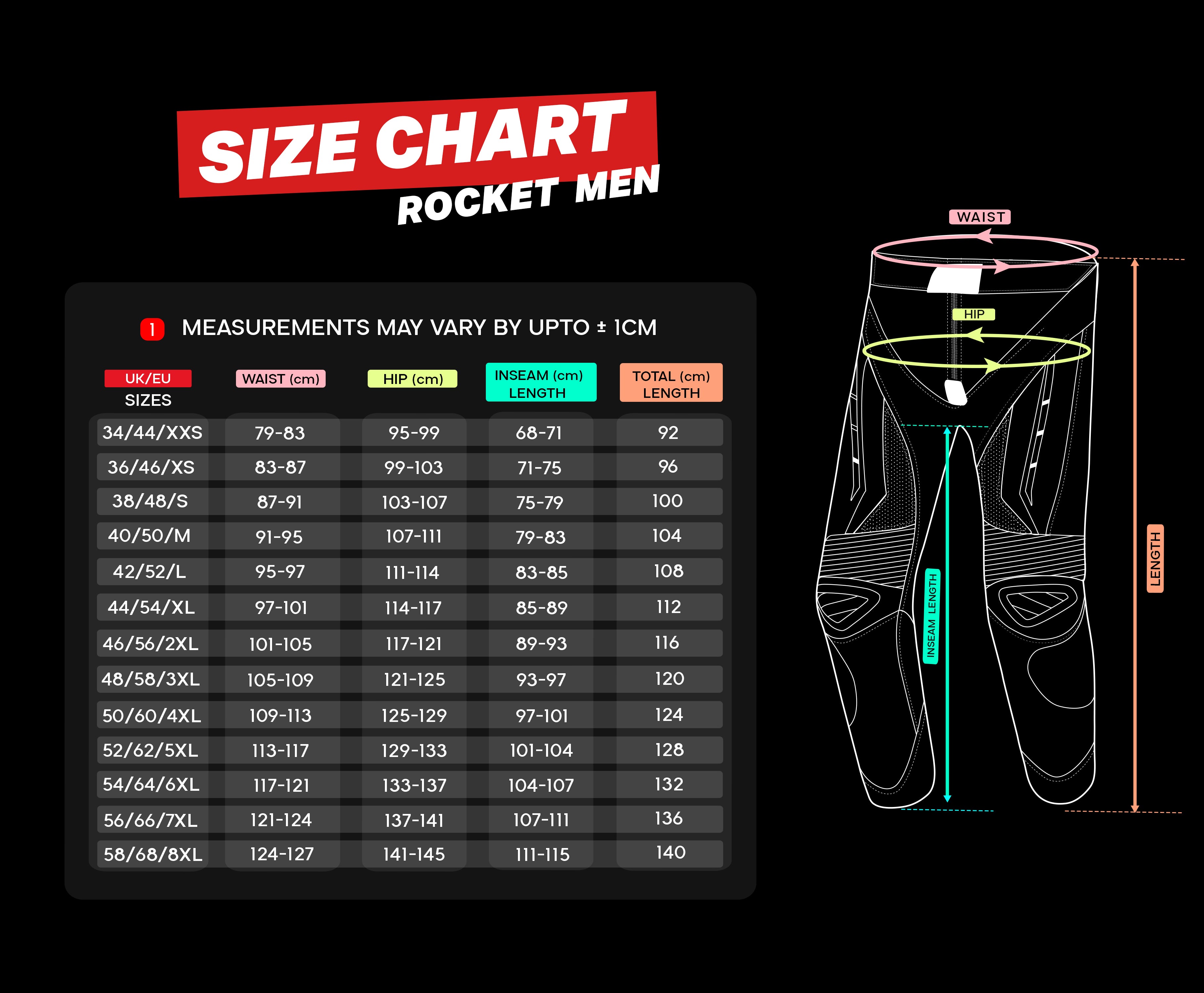 • Net weight: 2.30kg: Weight of the pants without the protectors.