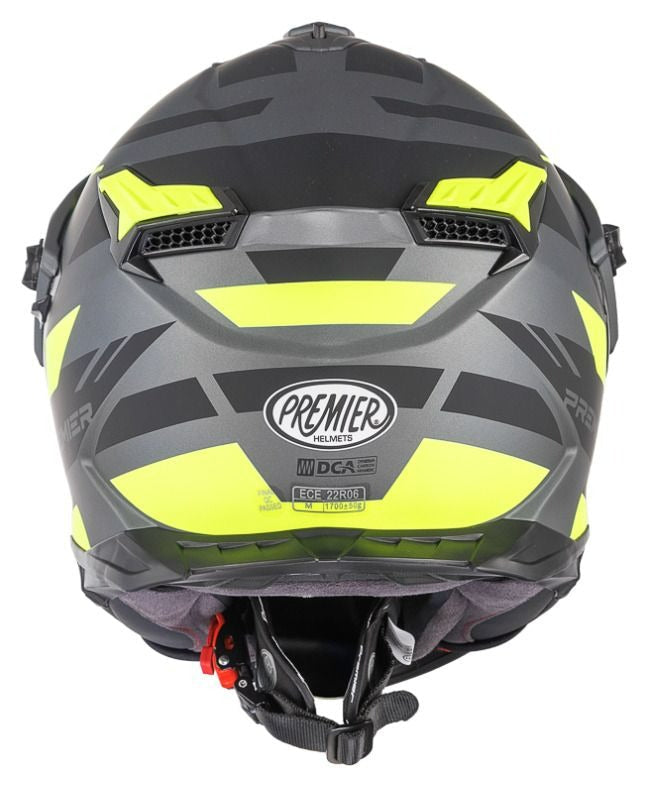 The Premier DISCOVERY EA Y 17 BM is a high-performance crossover full-face helmet, ideal for adventure and dual-sport riders. Constructed with Dyneema, carbon fiber, and aramid, it offers superior protection, great lightness, and an aerodynamic design. Built for long distances both on and off-road, it incorporates a retractable sun visor, a clear visor ready for Pinlock, advanced ventilation, and an interior compatible with Bluetooth systems. It is ECE 22.06 Homologated.