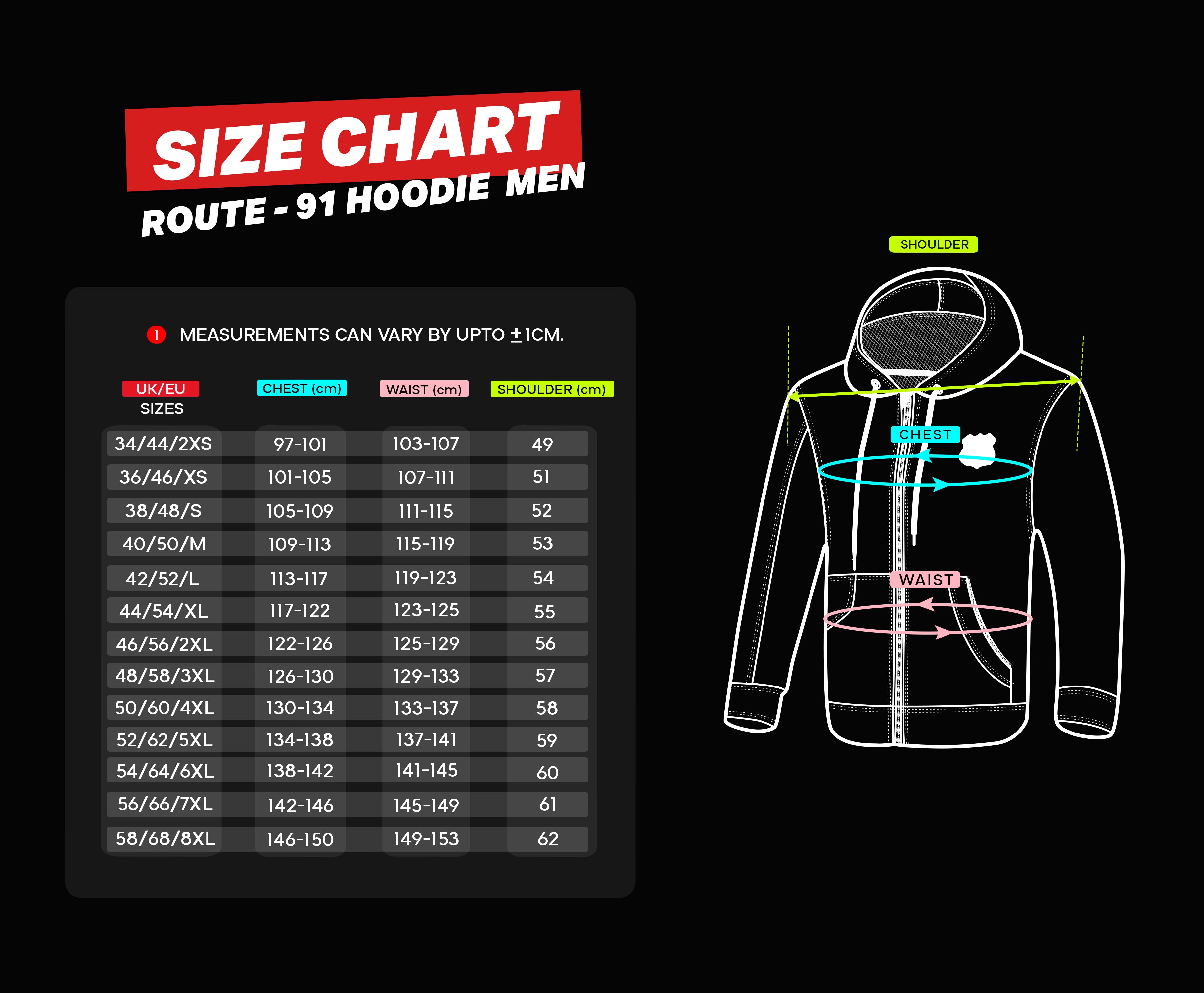 Versatile Hoodie, Perfect for Riding and Casual Use: RTech Route 91 Hoodie has an elegant casual hoodie look. Use the hoodie without armour when you are not riding. Warm fleece material keeps you cosy. When riding, put back the armour into the hoodie.