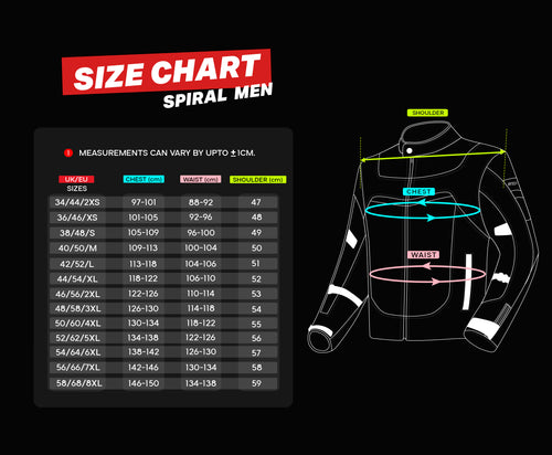 Adjustable for a Snug Fit: The RTech Spiral Mesh Motorbike Jacket comes with strap adjusters on the waist and forearms, velcro and zipper adjusters on the cuffs, and snap button adjusters on the biceps. Elastic stretch panels on elbows further enhance flexibility, giving you the freedom to move however you like.