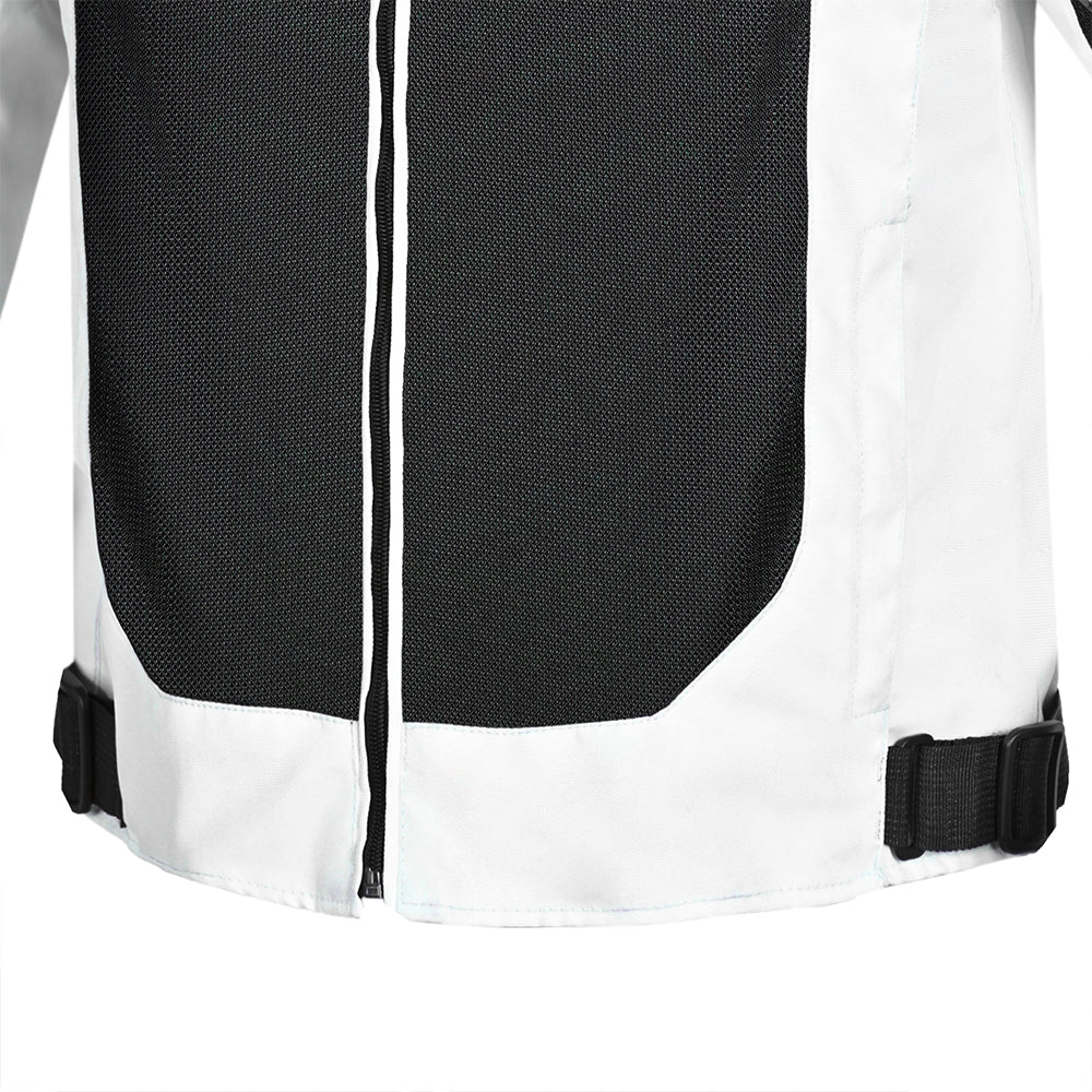 Adjustable for a Snug Fit: The RTech Spiral Mesh Motorbike Jacket comes with strap adjusters on the waist and forearms, velcro and zipper adjusters on the cuffs, and snap button adjusters on the biceps. Elastic stretch panels on elbows further enhance flexibility, giving you the freedom to move however you like.