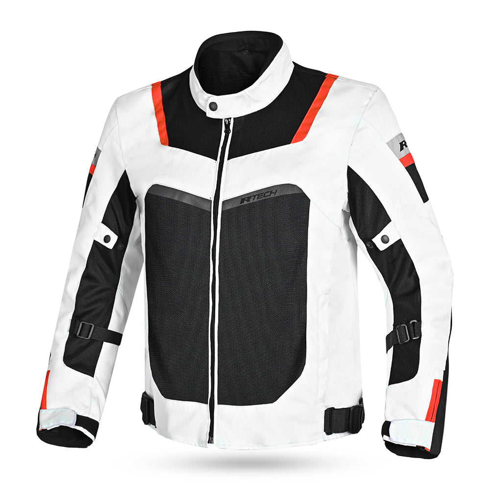 Well-Ventilated for Summer & Warm Weather Riding: RTech Spiral Mesh Jacket has excellent ventilation. Mesh panels on the chest, arms, and back keep the air flowing. Air prevents sweating and also evaporates any sweat that warm weather may cause.