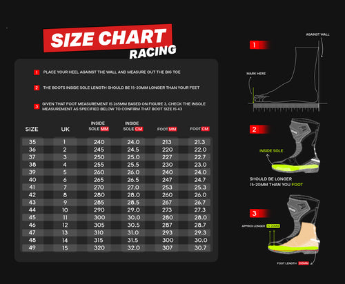 EN 13634:2017 CE Certification: Conforms to the latest European standards for protective motorcycle footwear, ensuring superior safety and durability.