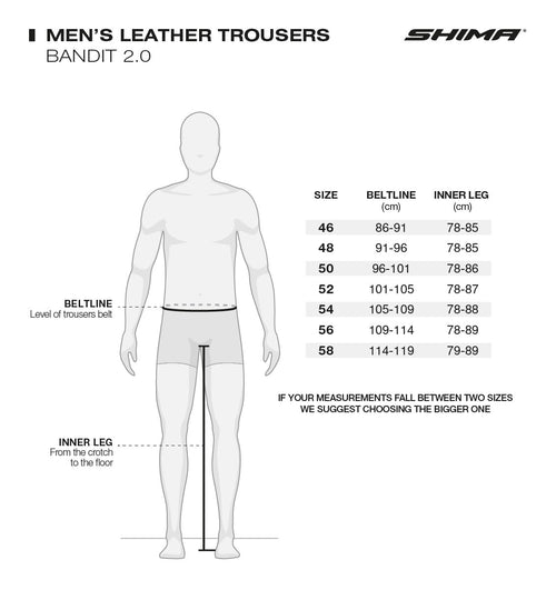 The SHIMA BANDIT 2.0 Pants are purpose-built for sport riders who demand high-performance protection and dynamic comfort on the road or track. Crafted from top-quality natural leather with strategic stretch zones, these pants provide excellent abrasion resistance while allowing flexibility where you need it most.