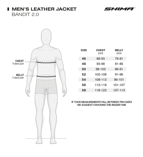 The Shima Bandit features the EvoLink system, which allows for the addition of accessory inner layers, such as a cooling or heating vest (available as an option). The regular fit and adjustable width at the hips provide comfortable comfort. Stretch and breathable fabric inserts on the sides, sleeves, and back offer a dynamic fit in the riding position. Strategically placed reflective panels increase visibility during nighttime rides. Crafted from high-quality, soft cowhide, the jacket is equipped with two types of connection zippers: a 360° zipper and a short zipper, allowing it to be quickly combined with select SHIMA pants.