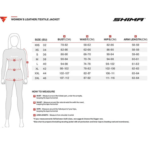 For a perfect fit, the jacket includes adjustable sleeves and waist widths. Thanks to the EvoLink system, you can easily pair it with optional heating or cooling layers for versatile, all-season comfort. Practical front pockets and a detachable hood (sold separately) add to its urban functionality. The short zipper and connecting loop allow you to combine the jacket with jeans or other SHIMA trousers for a stylish, safe look. The DRIFT LADY is available in multiple colors and also comes in a men’s version.