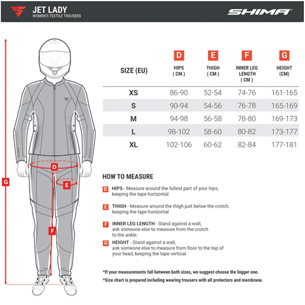 The SHIMA Jet Lady trousers are lightweight, breathable motorcycle pants designed specifically for women who ride in warm weather. These summer-ready mesh trousers offer outstanding ventilation thanks to large mesh panels on the front and back, ensuring maximum airflow and comfort on hot days.