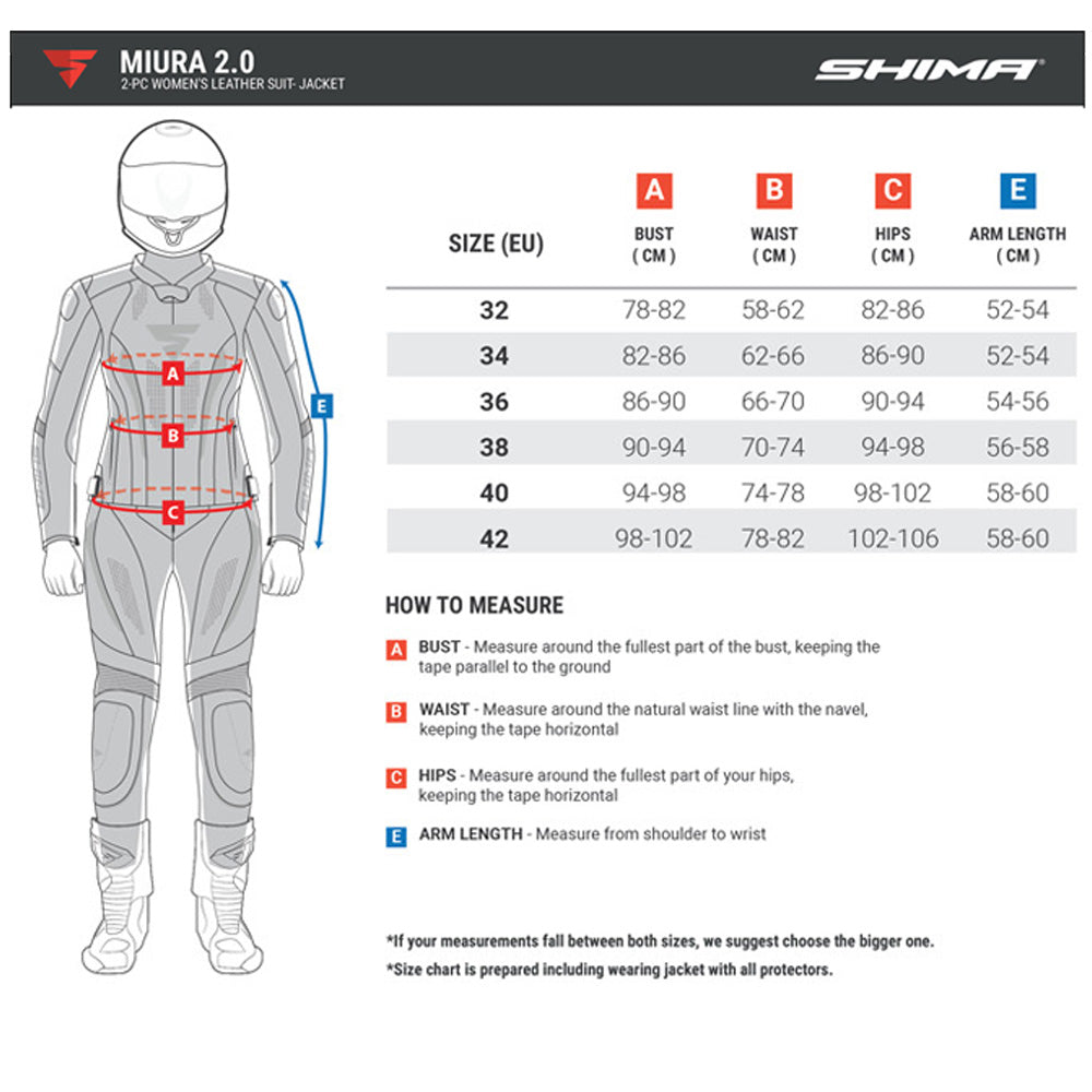 Available in four striking colour combinations—black/white, black/white/fuchsia, black/red, and black/white/fluo red—this jacket comes in sizes 32–42 and is designed to be paired with the matching MIURA 2.0 trousers, forming a complete two-piece motorbike suit built for performance and elegance.
