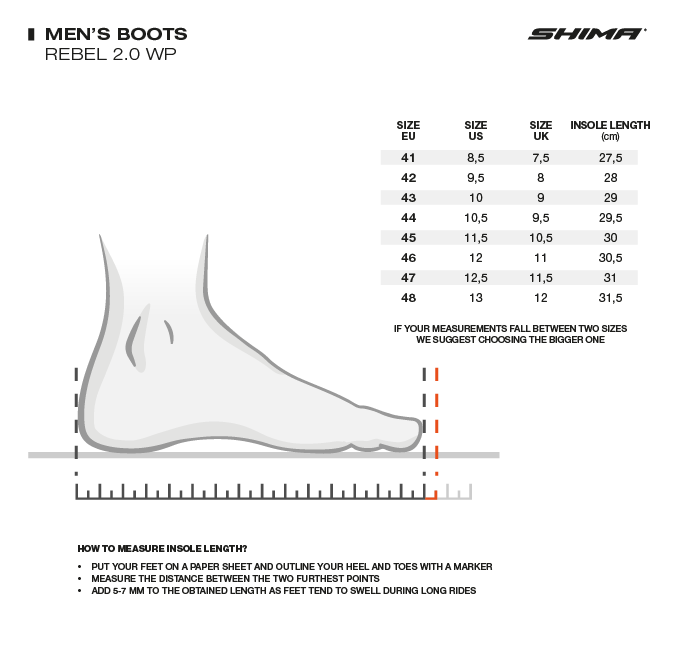 The SHIMA Rebel 2.0 waterproof motorcycle shoes are a combination of safety and urban style designed to be used in everyday storage. Its ergonomic rubber soles, reinforced heels, toes and toggles and impact absorbers on the toggles guarantee a high level of safety. The perforated zones add extra breathability during driving. The oven is lined with a NextDry™ microporous membrane to keep the pies dry when the climate becomes very humid. For a high level of comfort, Rebel 2.0 is equipped with a pulling strap and a rack on the side to facilitate the placement and removal of the shoe. A special relief in the toe area will improve grip when shifting, while the inclined construction imitates the position of the foot when riding a motorcycle. These straps come with two pairs of cords, so you can choose your style according to your preference.