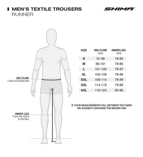 The SHIMA RUNNER Touring Pants are designed for riders who demand comfort, functionality, and protection on long-distance journeys. Built for versatility across various weather conditions, these pants feature a durable textile outer shell, a removable thermal liner, and a breathable NextDry™ waterproof membrane — offering multi-season usability without compromising mobility.