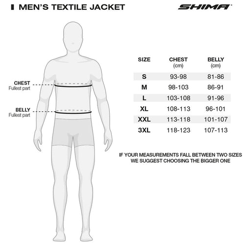 Meet the upgraded version of a rider favorite – the RUSH 2.0 textile motorcycle jacket for men. This 3-layer jacket builds on the success of its predecessor, offering even better performance and protection. Reinforced with DuoLayer Protection at the shoulders and elbows, it delivers superior durability in key impact zones. For safety, it comes equipped with certified SHIMA AirForce protectors—level 2 on the back and level 1 on the shoulders and elbows. Whether you're commuting in the city or cruising through the suburbs, this jacket is built to handle varied weather conditions thanks to the H3 Heat Free ventilation system, NextDry™ waterproof membrane, and removable thermal liner.