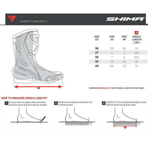 The SHIMA TENEX WP LADY are versatile touring and sport motorcycle boots designed for female riders who expect comfort, safety, and a precise fit on every journey. Suitable for both short rides and long-distance touring, these boots combine advanced protection with everyday usability.
