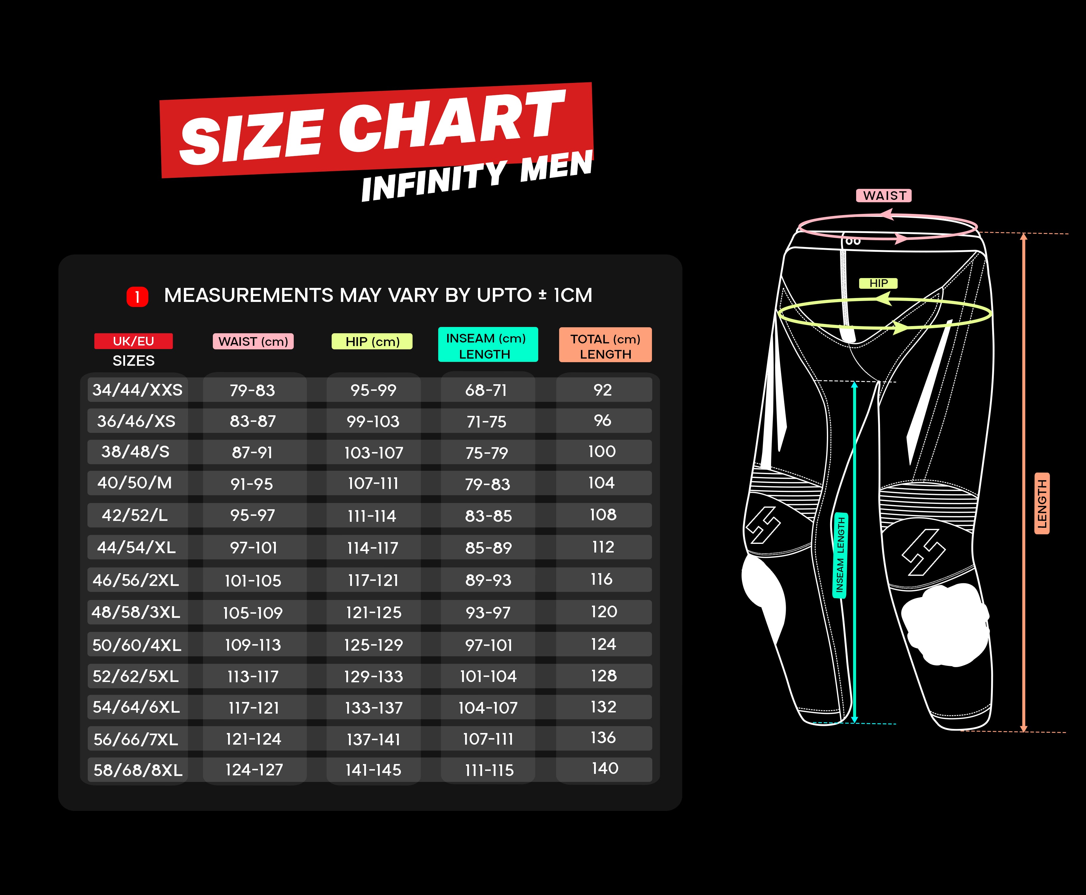 Stretch panels: Accordion polyamide at knees and lower lumbar area for flexibility