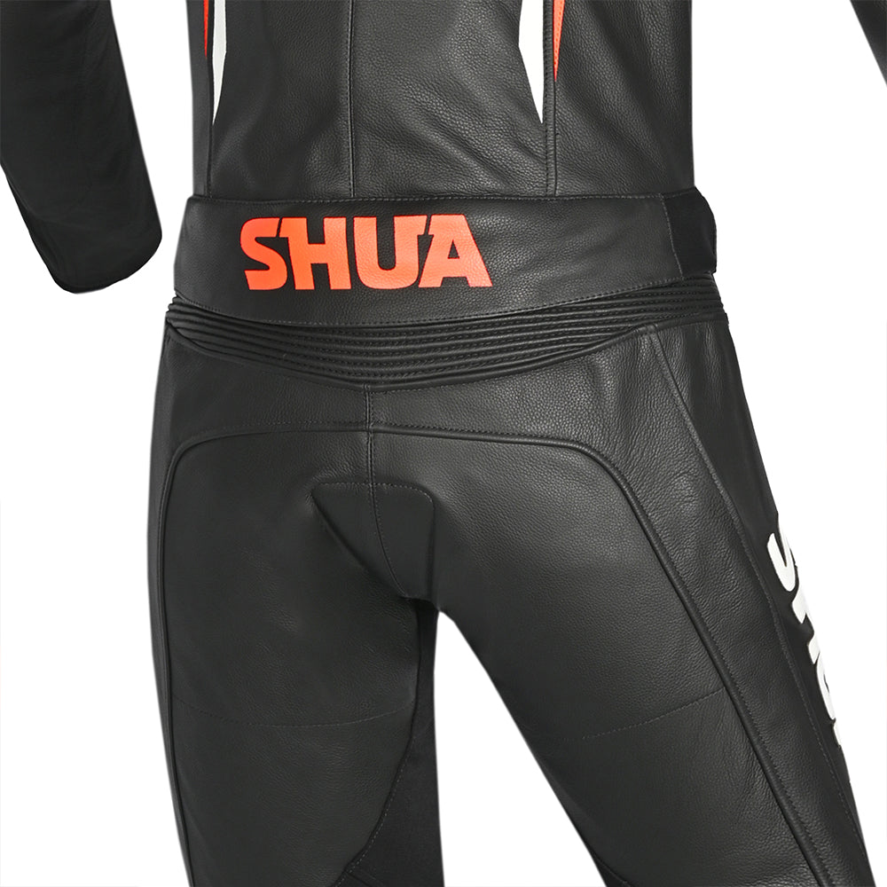 Introducing the SHUA Infinity 2-Piece Motorcycle Racing Leather Suit in Black/Orange—a fusion of advanced protection, premium materials, and ergonomic design tailored for the discerning rider.